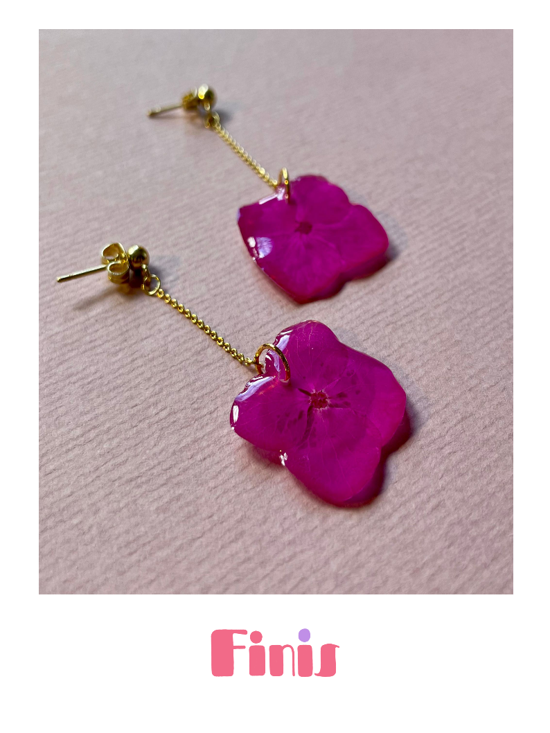 Handgefertigte Ohrringe aus Resin mit echten Blüten – jedes Paar ein kleines Einzelstück. Das Resin bewahrt die Blüten vor Wind, Wetter und Zeit, sodass du lange Freude an den Ohrringen haben wirst.