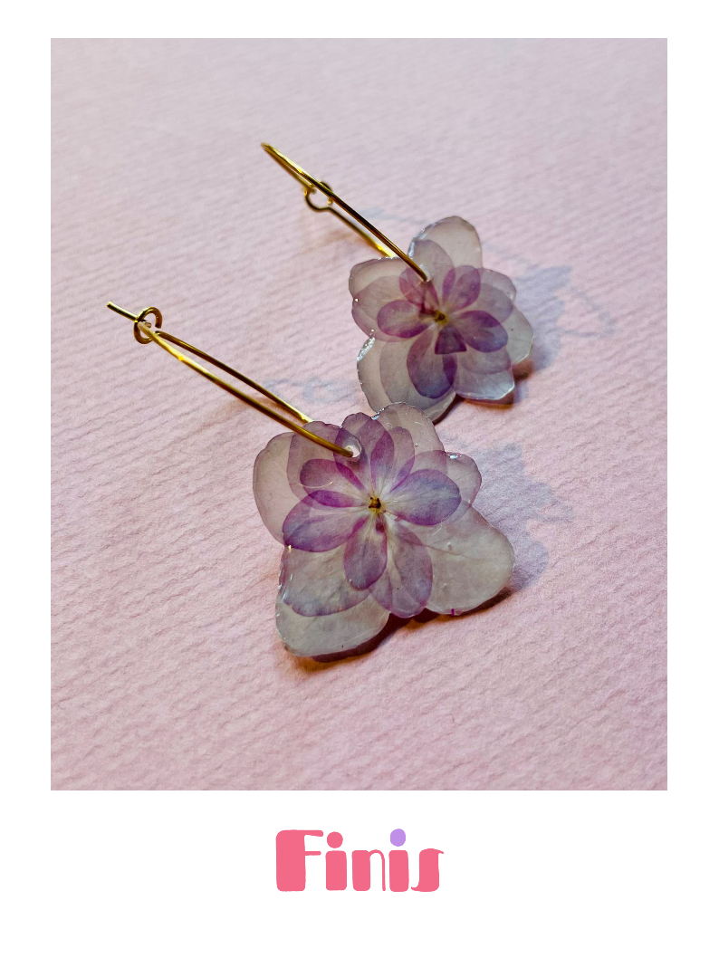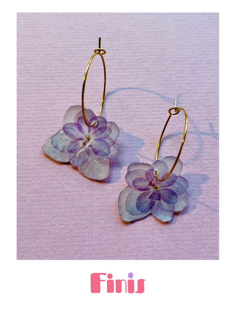 Handgefertigte Ohrringe aus Resin mit echten Blüten – jedes Paar ein kleines Einzelstück. Das Resin bewahrt die Blüten vor Wind, Wetter und Zeit, sodass du lange Freude an den Ohrringen haben wirst.