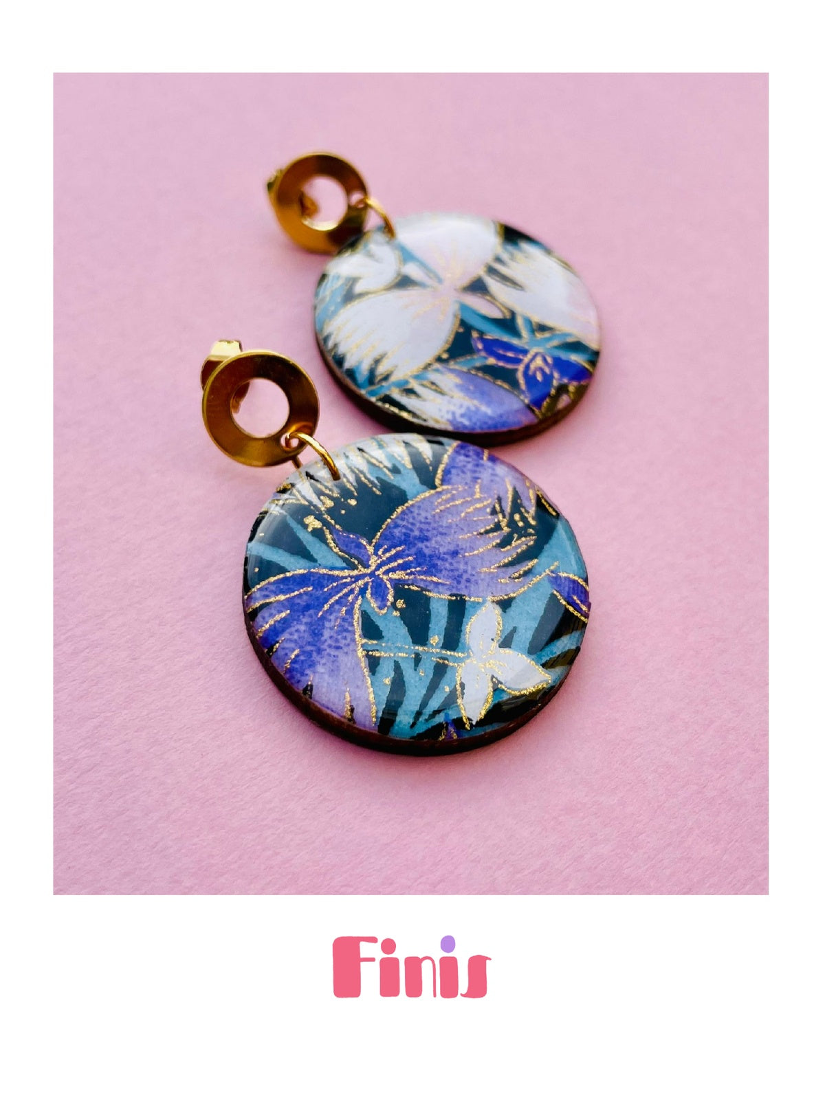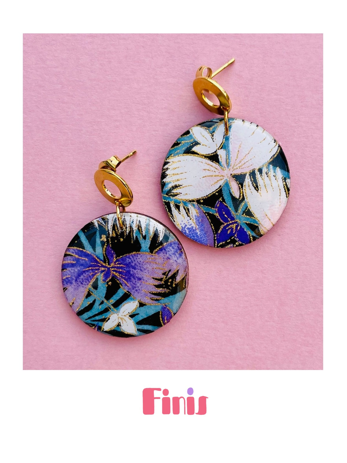 Kein Ohrring gleicht dem anderen: Jeder Ausschnitt aus dem Chiyogami-Papier ist anders, und so entstehen immer wieder neue kleine, einzigartige Kunstwerke. Dein bestelltes Paar kann daher leicht von den Fotos abweichen – und wird garantiert ein echtes Einzelstück sein.