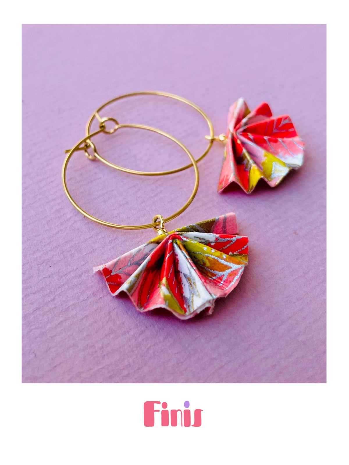 Material: Die Fächer bestehen aus original Japanisches Chiyogami Papier, die Creolen sind aus Chirurgenstahl (316L)