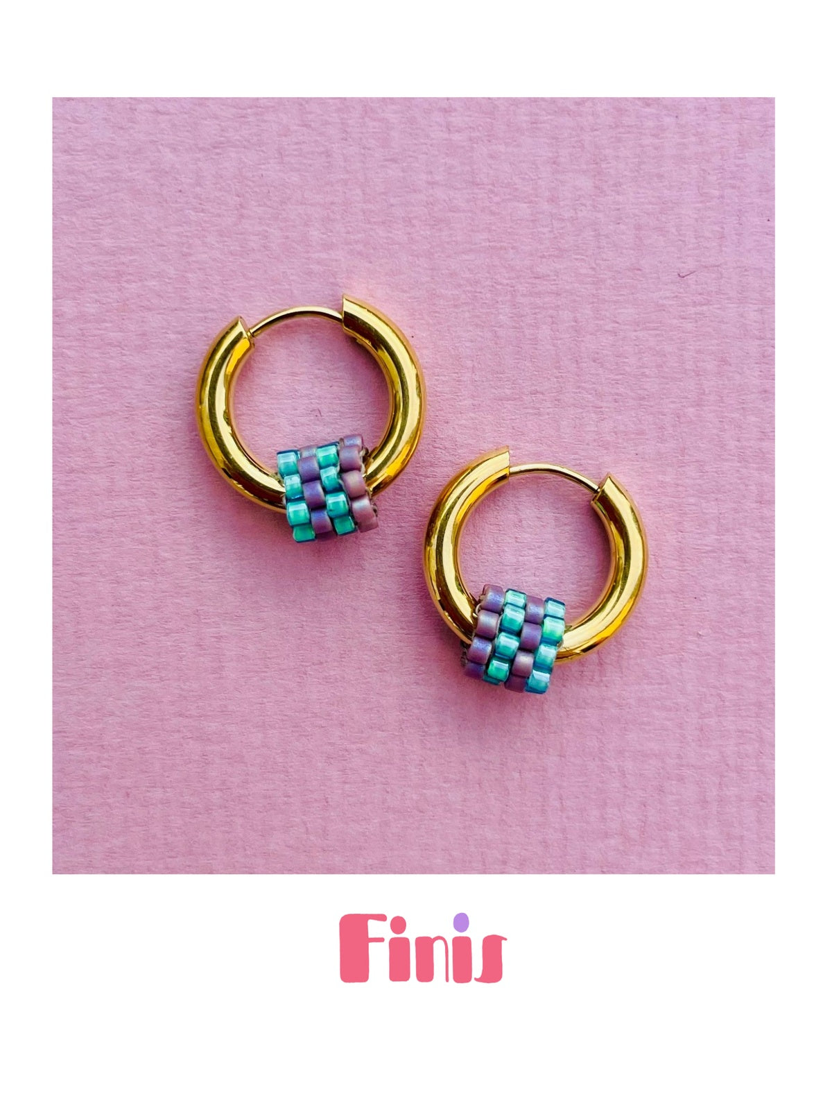 Diese handgefertigten Perlenringe hängen an zarten, vergoldeten Edelstahl-Creolen – jedes Paar ein einzigartiges Schmuckstück.