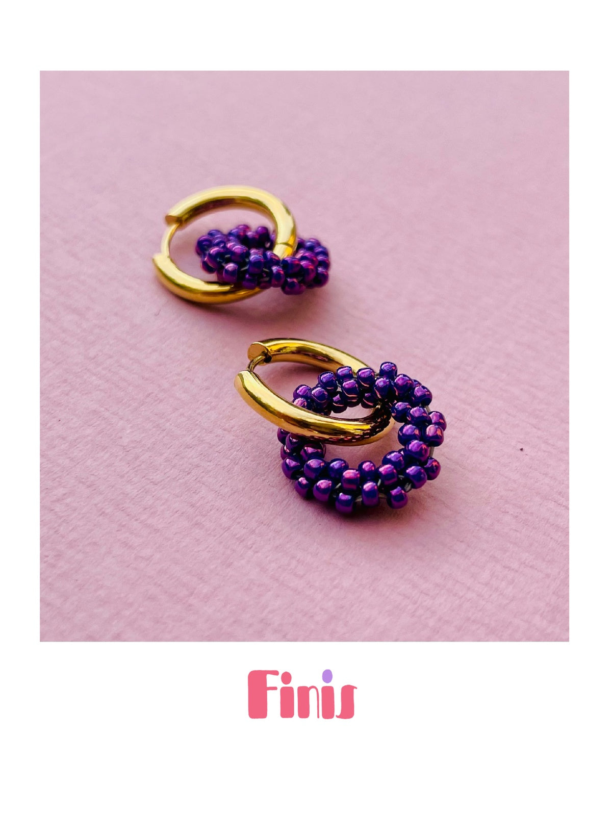 Diese handgefertigten Perlenringe hängen an zarten, vergoldeten Edelstahl-Creolen – jedes Paar ein einzigartiges Schmuckstück.